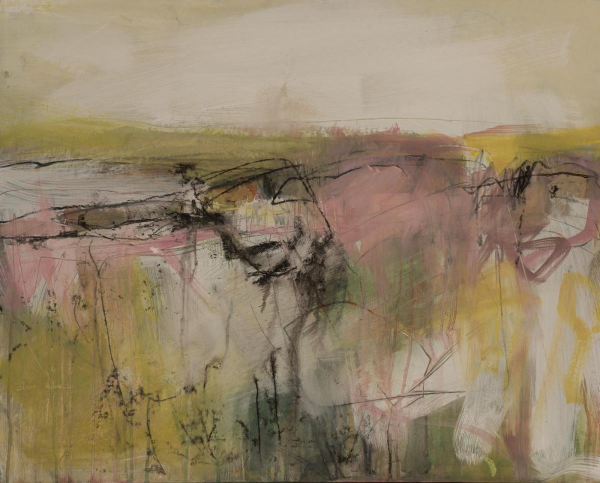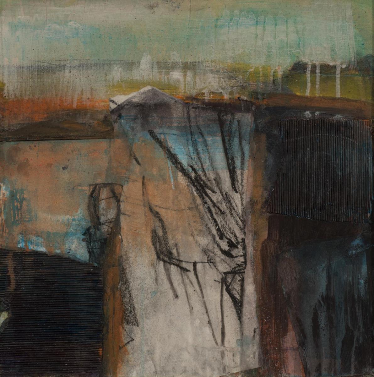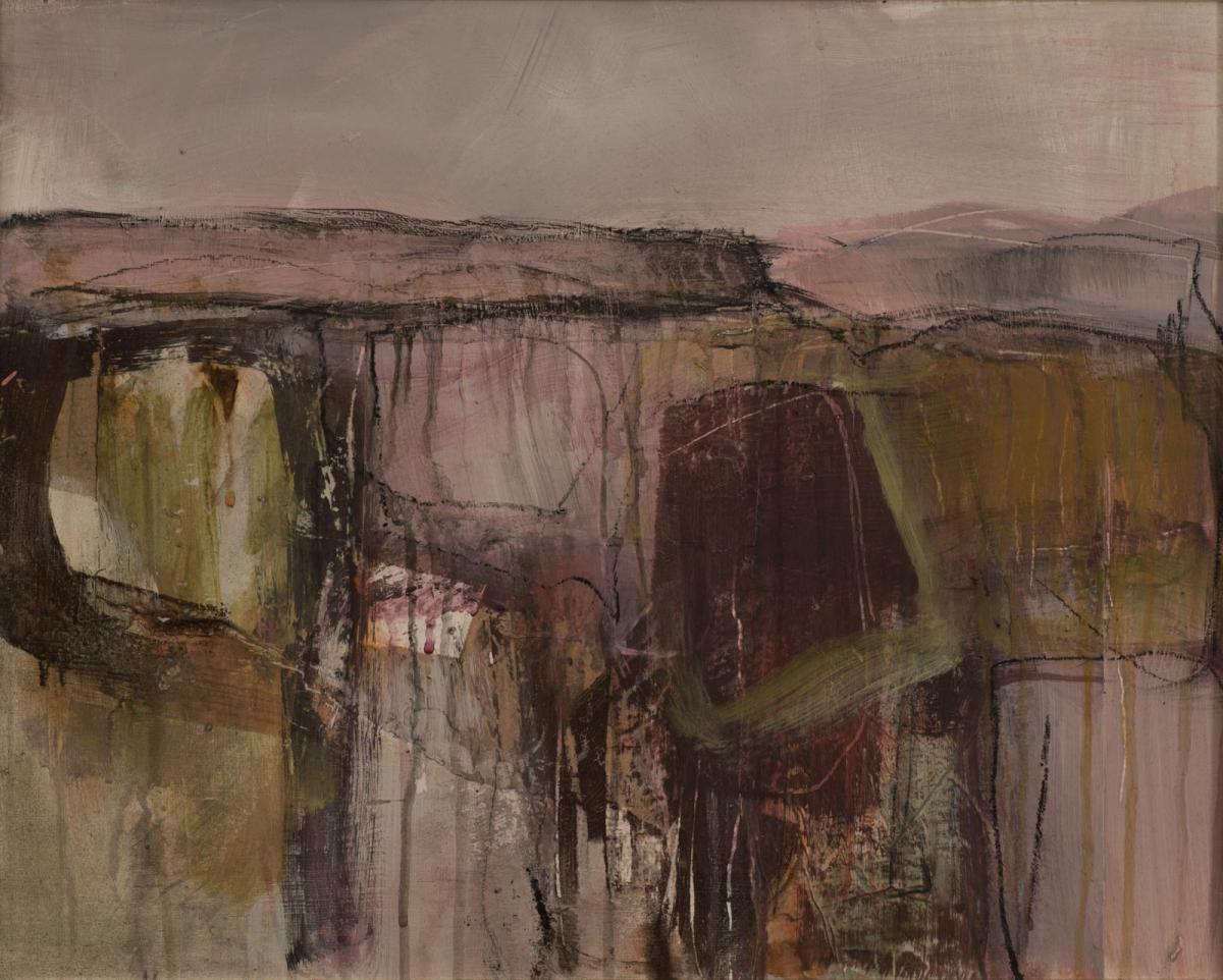 Gabby’s process is visceral and complex, building layers and scoring back into the work, applying and lifting paint to reveal older layers, washing away to make rivers of paint. Many of the landscape paintings reflect how the landscape is geologically built or weathered. In building up the layers of colour and texture the paintings represent the slow decay of nature through the seasons. Gabby often starts by making lots of small sketches in charcoal, ink or graphite whilst out walking her dogs or when travelling abroad…always trying to capture the essence of the place. Movement and colour are always at the heart of her paintings.