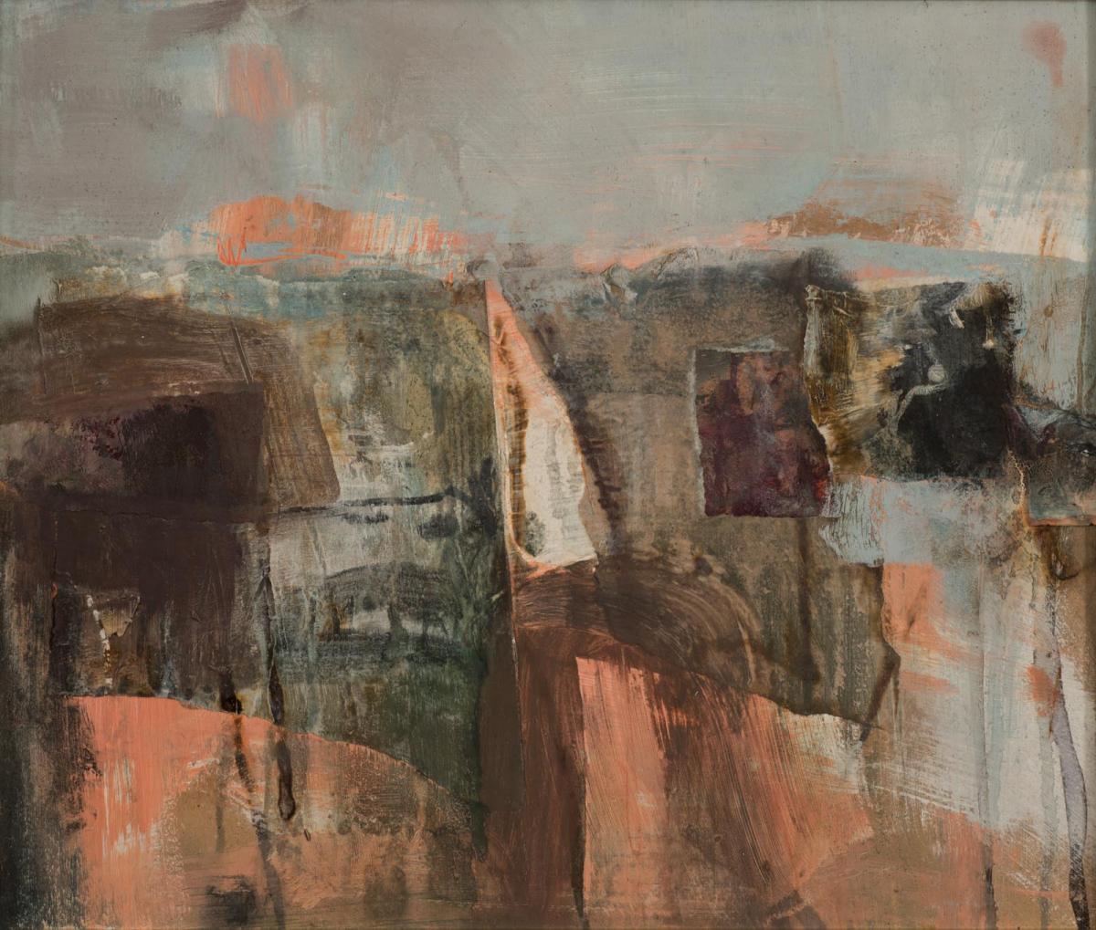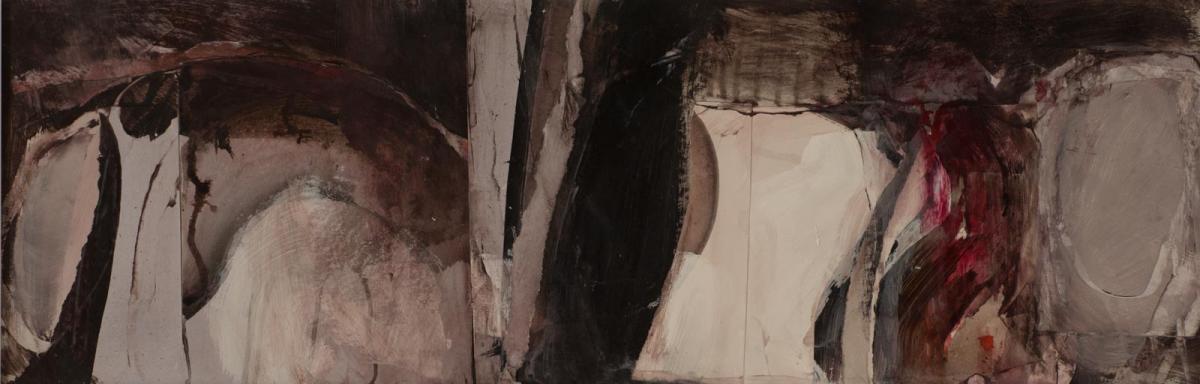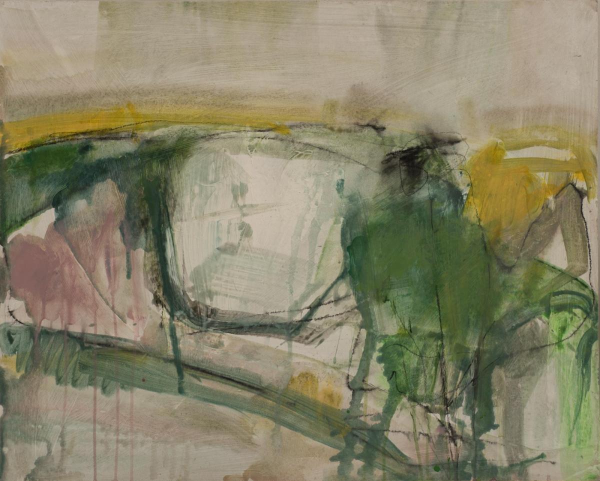 Gabby’s process is visceral and complex, building layers and scoring back into the work, applying and lifting paint to reveal older layers, washing away to make rivers of paint. Many of the landscape paintings reflect how the landscape is geologically built or weathered. In building up the layers of colour and texture the paintings represent the slow decay of nature through the seasons. Gabby often starts by making lots of small sketches in charcoal, ink or graphite whilst out walking her dogs or when travelling abroad…always trying to capture the essence of the place. Movement and colour are always at the heart of her paintings.